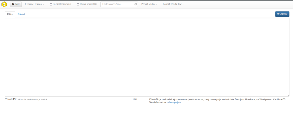 Naší další open-source aplikací, kterou lze zdarma použít je PrivateBin.